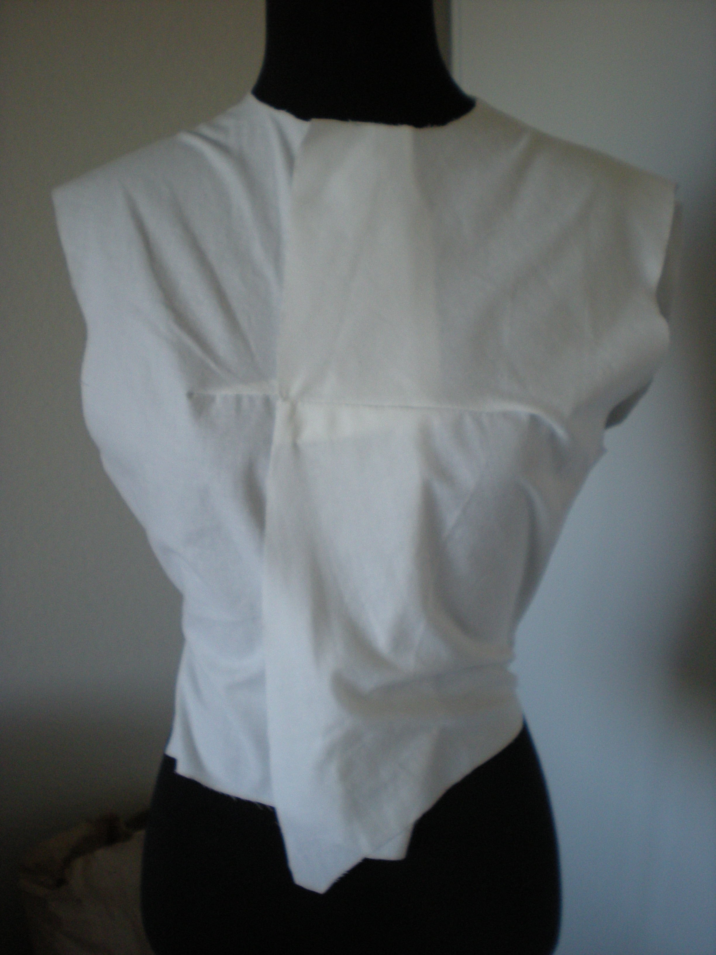 The body of the jacket consists of 2 back pieces, 2 side pieces and 2 front pieces. I made a mock-up and it was so ridiculously large that I tried it without the side pieces to see what it was like. This is how much the front pieces overlap without even including the side pieces of the bodice. I don’t see how the jacket is supposed to be small enough to reveal some of the vest. Right now, this pattern has about an extra foot of fabric in it (if the side pieces are included). It looks like I will have to completely recut the jacket, which somewhat negates the convenience of a pattern.