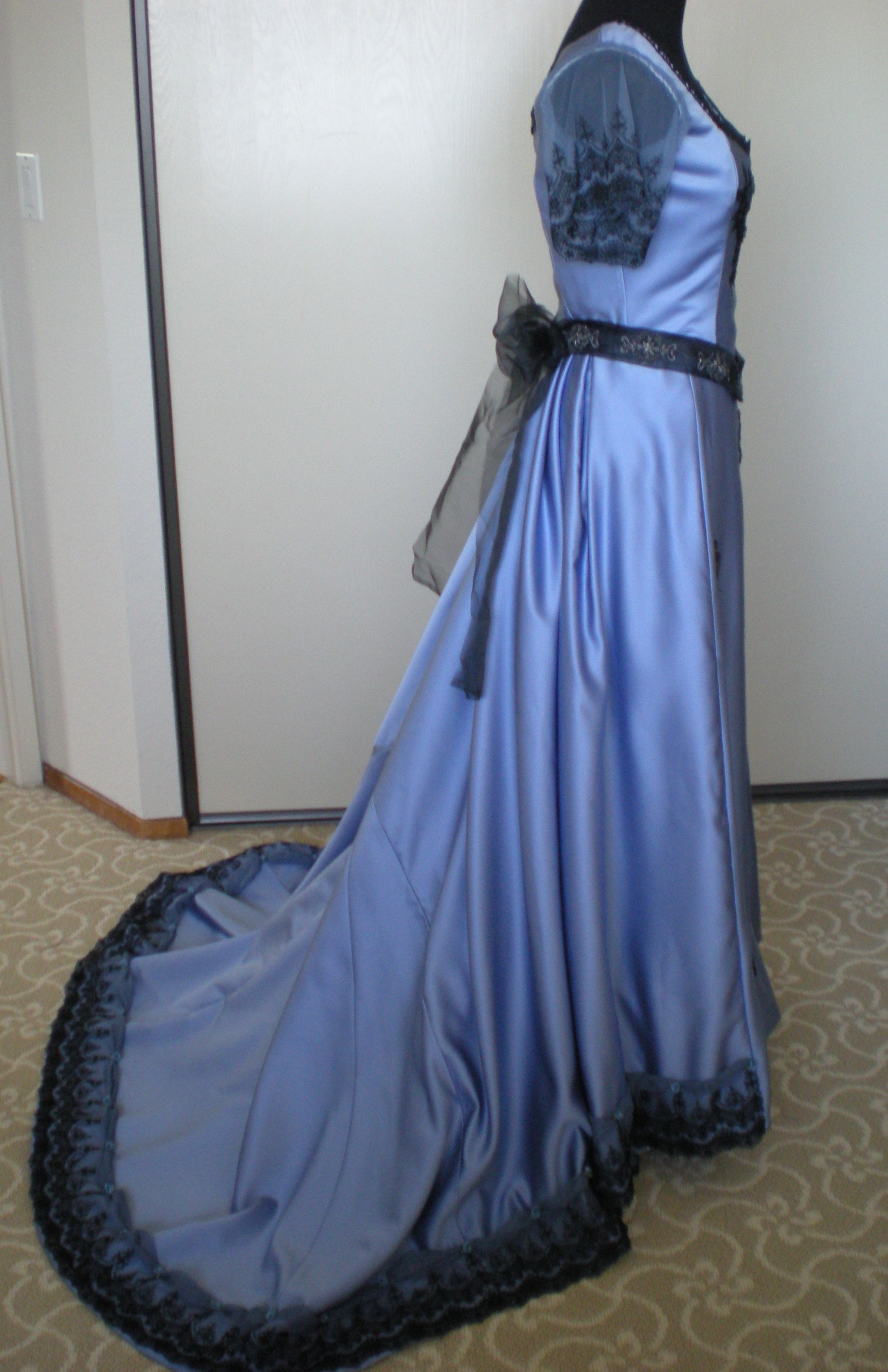 This project took a very long time! It was my first time sewing a dress from this era, and also the first trained gown I’ve done. I’m glad it’s finished, but like any fabric junkie I’m already planning my next project.