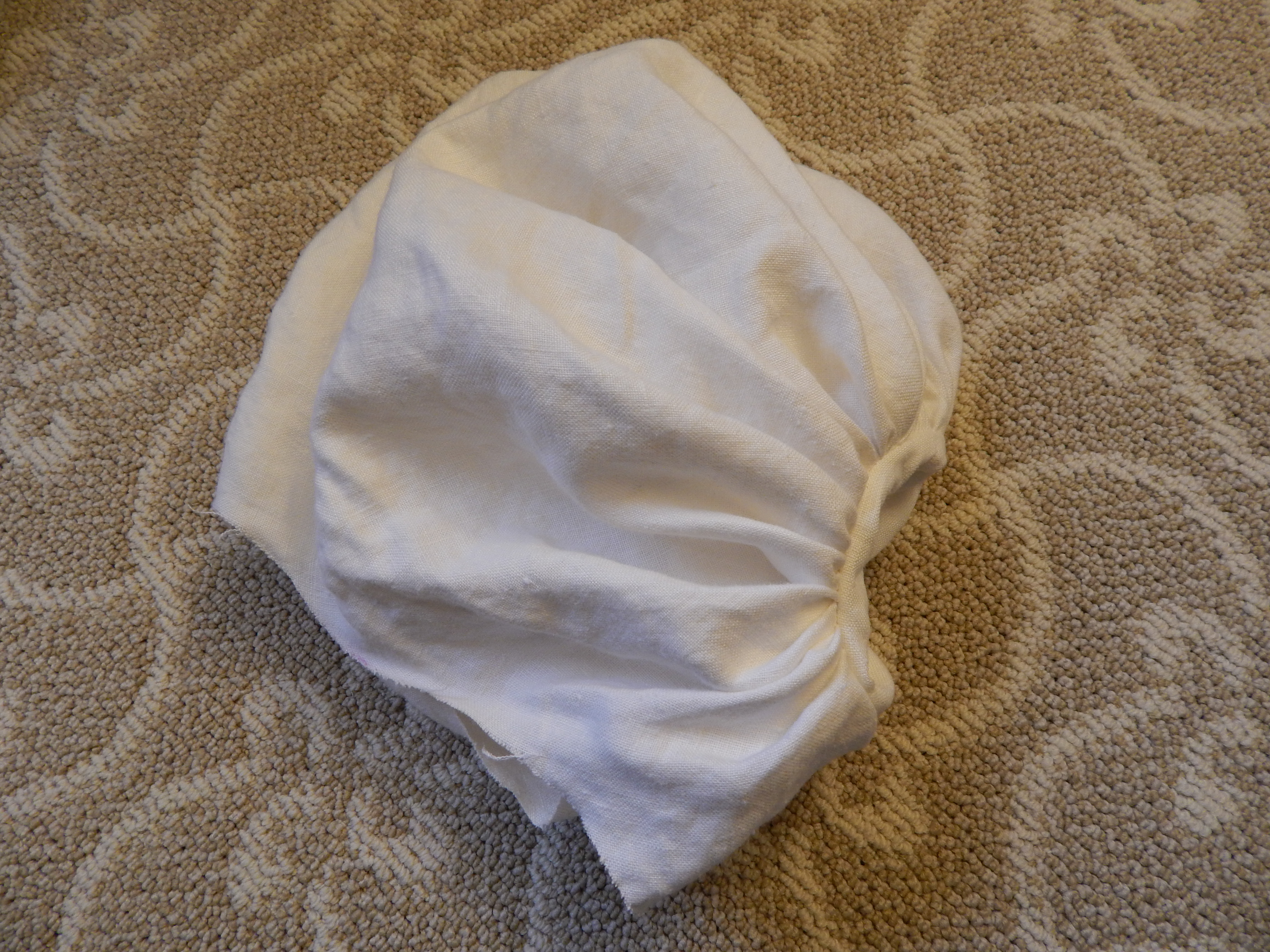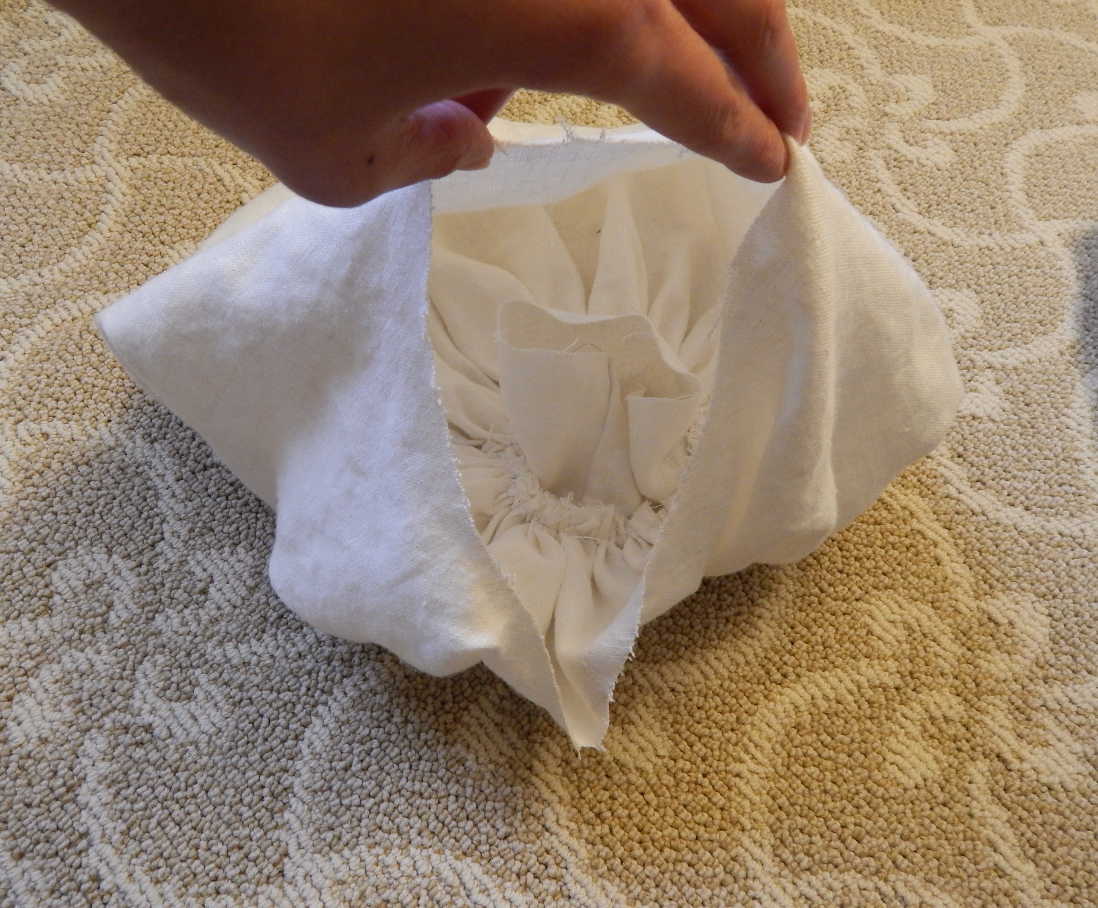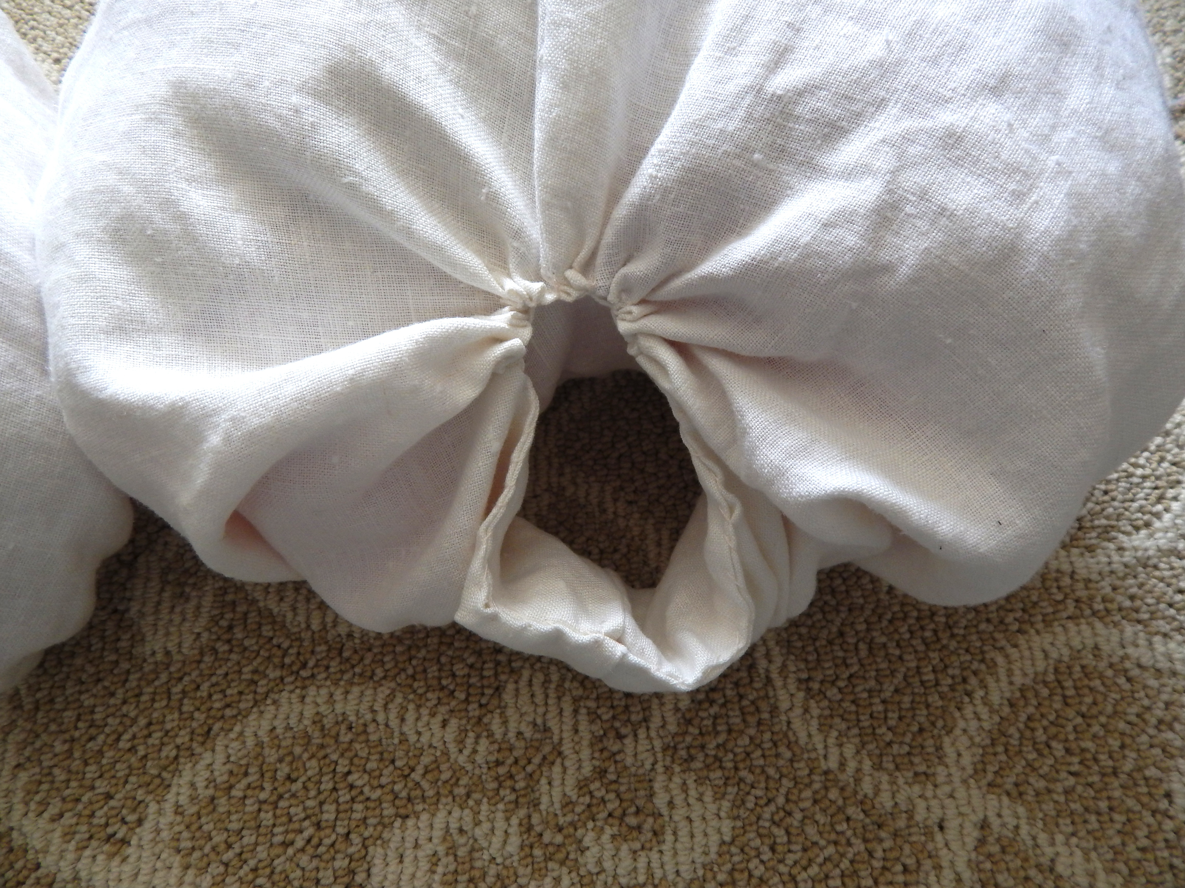 The stuffing was placed around the tube of fabric, and the bottom portion was left unstuffed. (Note: My linen was fairly opaque, but if you use a thinner fabric you will want to stick to light-colored stuffing).