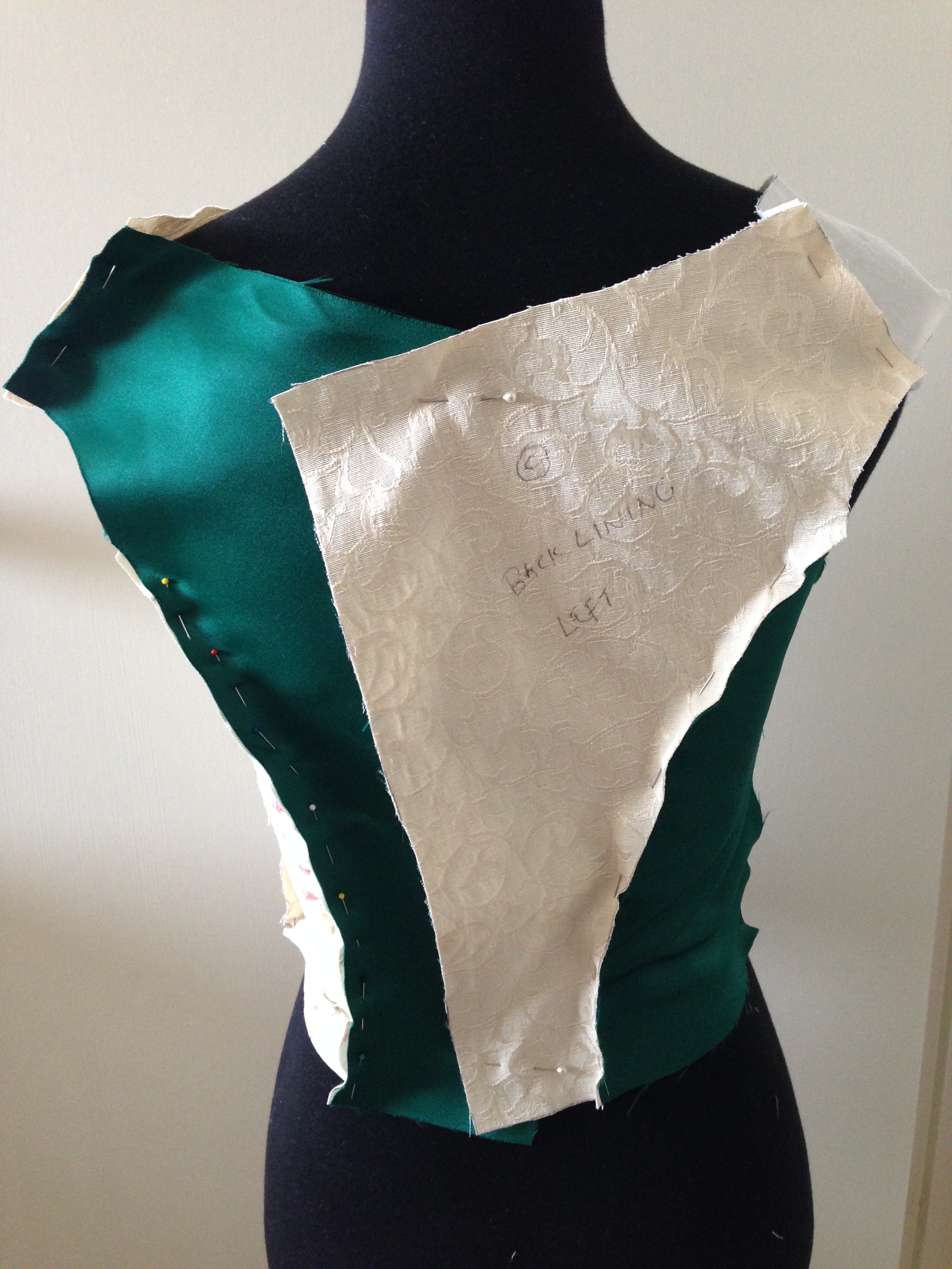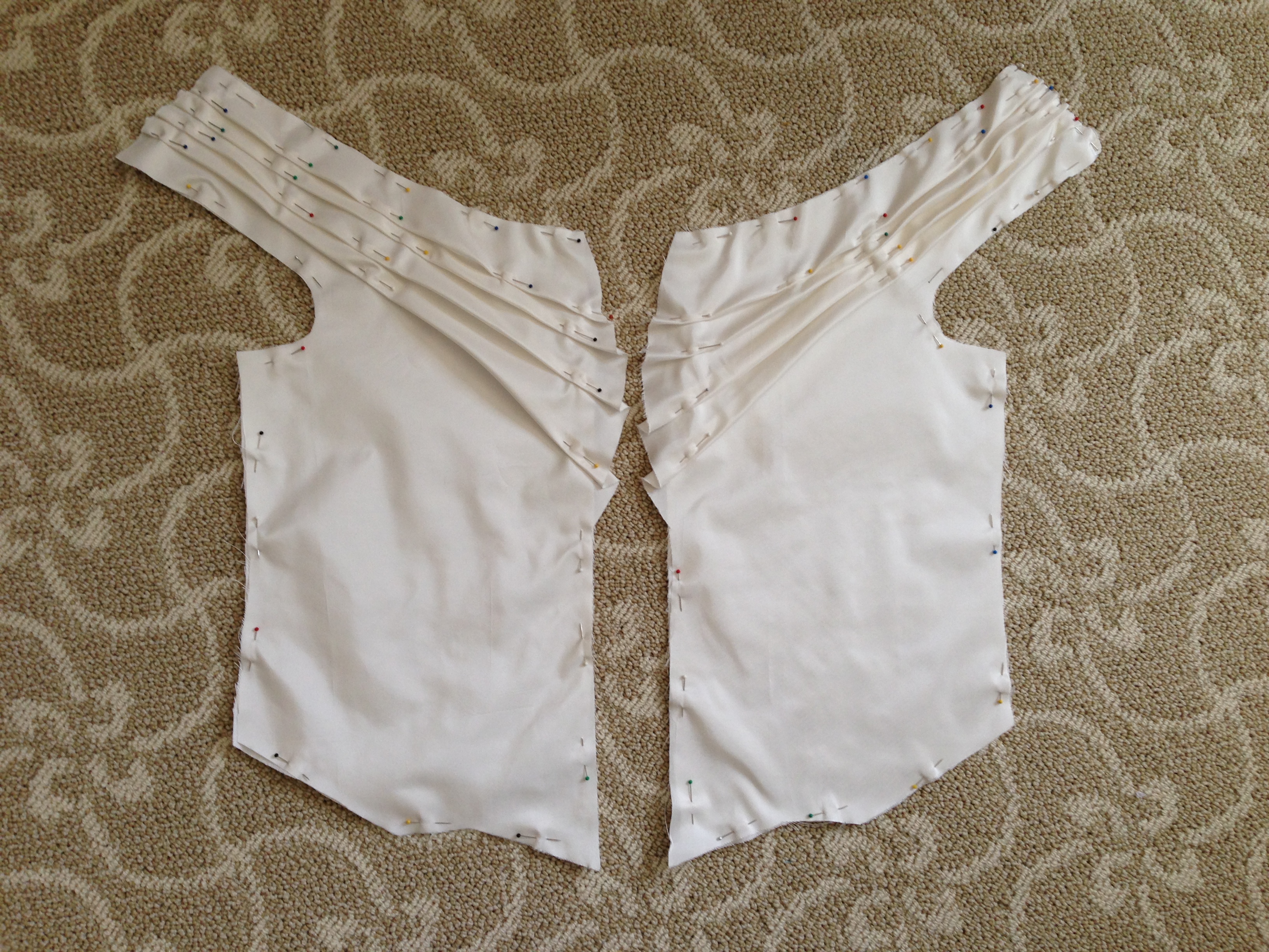 Here is the view from the other side, where the tube was first sewn on. I still need to sew on some ties, but I am waiting to finish my bodice first. Then I can figure out if it will be more comfortable to attach the poufs to the corset or bodice.