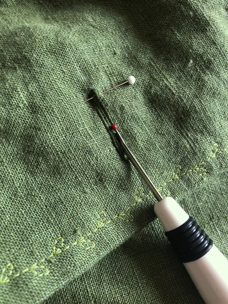 Here’s a helpful hint: When cutting open your buttonholes you can put a pin there to stop your seam ripper from accidentally ripping too far.