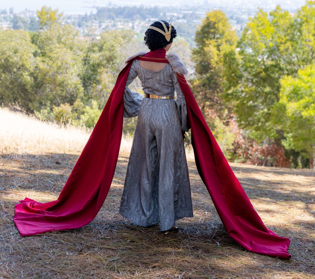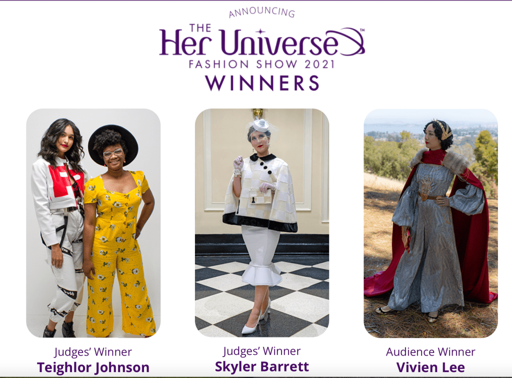 Last year I had the wonderful privilege of being one of the finalists selected to be in the Her Universe Fashion Show (HUFS), and then ultimately one of the winners! The show is normally held yearly at San Diego Comic Con during the summer but the applications open up in the spring. Since this year’s show announcement is coming up, I thought this would be a good time for me to write up a post about my experience and the many questions I’ve been asked since last summer. (If you want to see the FAQ that includes what the show is, how the contest is run, any advice, etc. please see the second half of this post after my design photos). In 2021 Her Universe held a virtual show, which meant that instead of walking the stage in front of a live audience in San Diego, we submitted a lot of footage that was edited for judging purposes and streaming as part of Comic-Con at Home. My experience is a little different from the in-person show, but a lot of the information is still applicable!