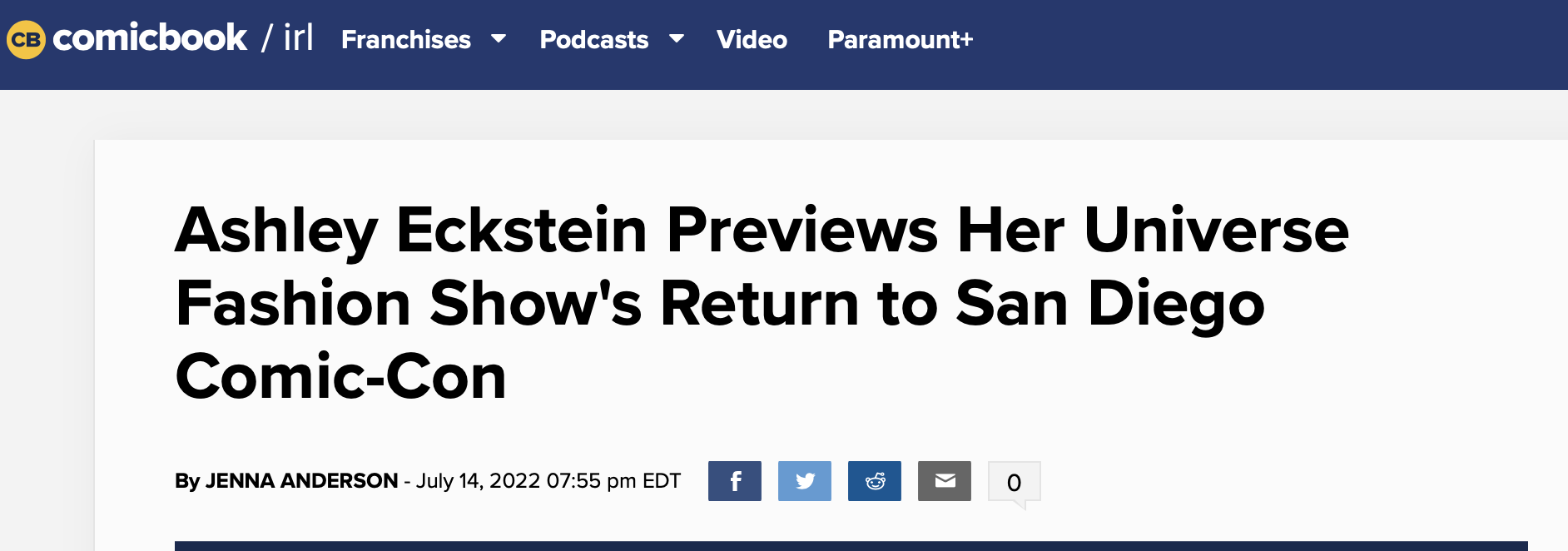 “Ashley Eckstein Previews Her Universe Fashion Show’s Return to San Diego Comic-Con” (Comicbook.com July 14, 2022)