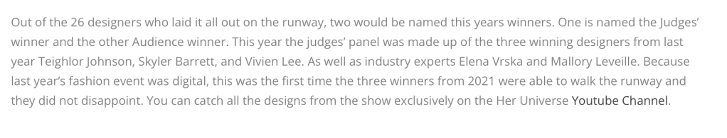 “The Must-See Fashion from Her Universe SDCC Fashion Show” (The Illuminerdi July 27, 2022)