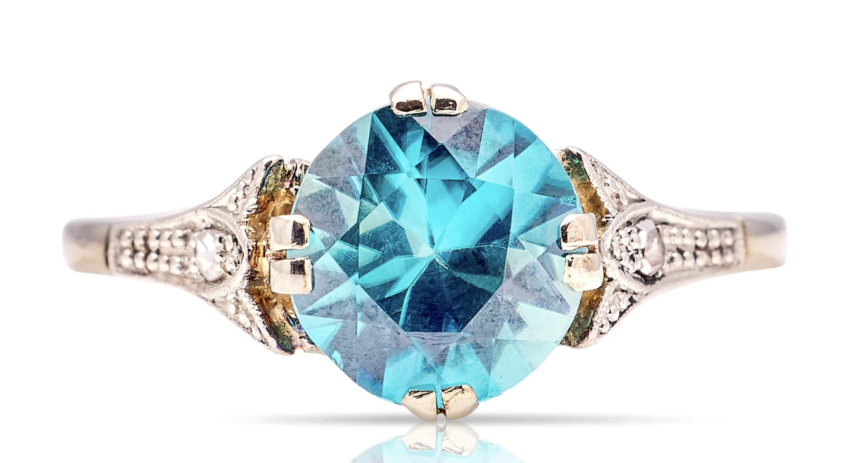 This blue zircon and diamond ring from about 1925 is such a pretty thing.