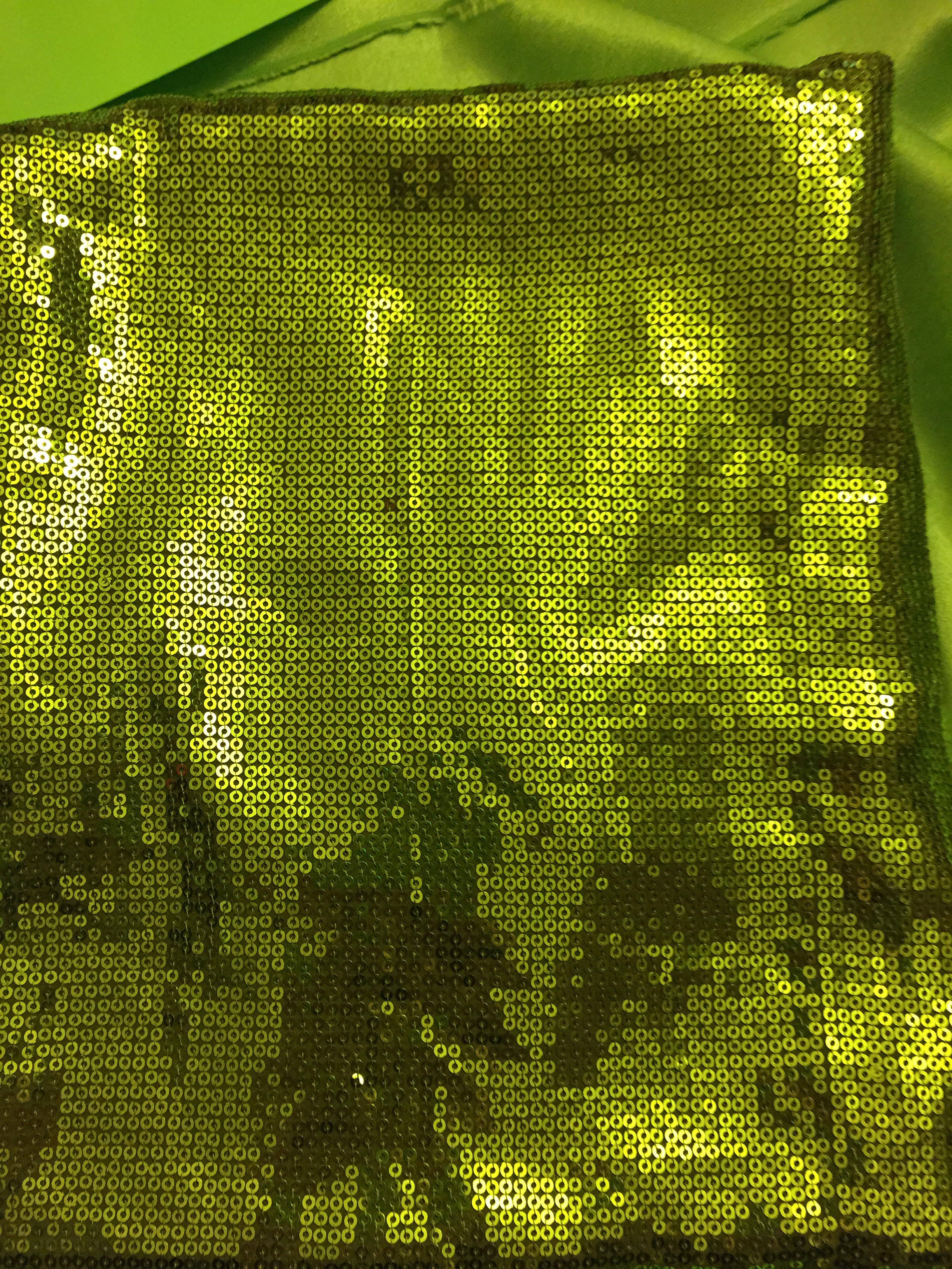 IMG_5607Here is the crazy apple green sequined fabric I’m using for the bodice! I am almost afraid to cut into it.