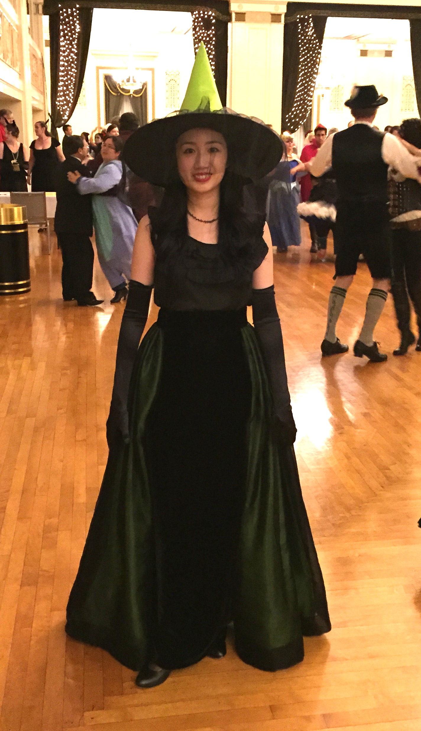 I didn’t have time to put in boning, and I have terrible posture, so whenever I slouched you could see the bodice wrinkling. My improvements wish list for next time are boning, maybe some black crystals around the flowers (just like the movie version), and possibly a a larger wig.
